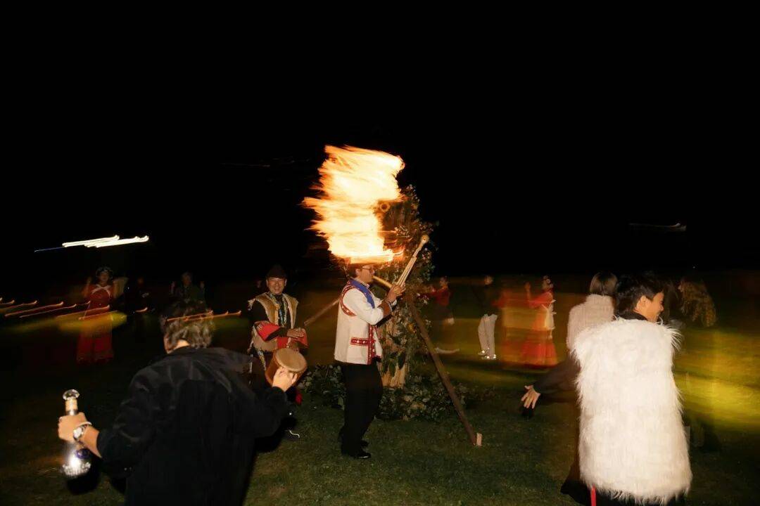 还额外细致地请来了云南本地的艺人,点燃火把,穿戴民族衣饰吹打起舞,充满人命力。