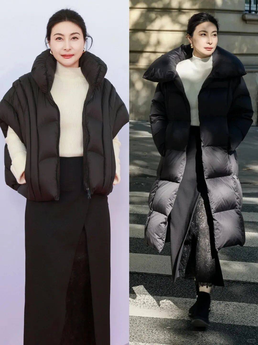 巴黎时装周光阴,又现身波司登大秀,和董洁同框热聊。Blingbling的茧形剪裁羽绒服,也是轻松操纵住。