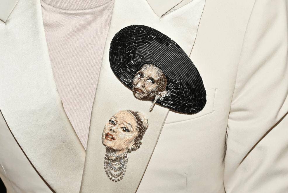 操刀《邪法坏女巫》的导演 Jon M Chu 超有心地将 A妹和辛西娅两位同伴别正在衣襟。意大利刺绣打算师 Nerdbead 将她们打算成串珠胸针,跃然纸上的制型倏得成为吸睛彩蛋。