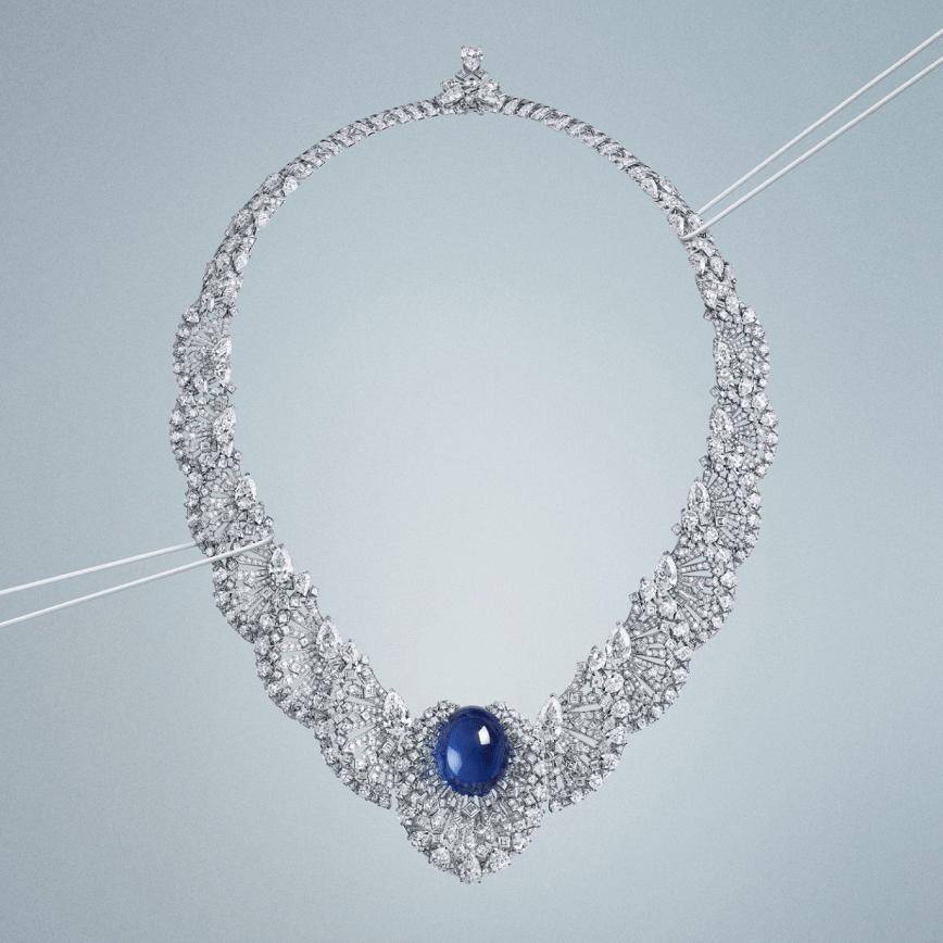 “公主范儿”这条赛道上的“天花板”范宁(Elle Fanning),则额外挑选了一件卡地亚 En Équilibre 系列的 Pavocelle 项链,可是,正在打算时项链主题那颗重达 58.08 克拉的卵形凸面蓝宝石并没有崭露正在此次的制型中,却不测地适配她身上的碎花礼裙。